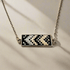 Delicate, pretty necklace with hand-stitched patterns inspired by the geometric motifs distinctive in Middle-Eastern art and architecture, to honour the heritage of refugees from Afghanistan, Palestine, Syria and Iran.